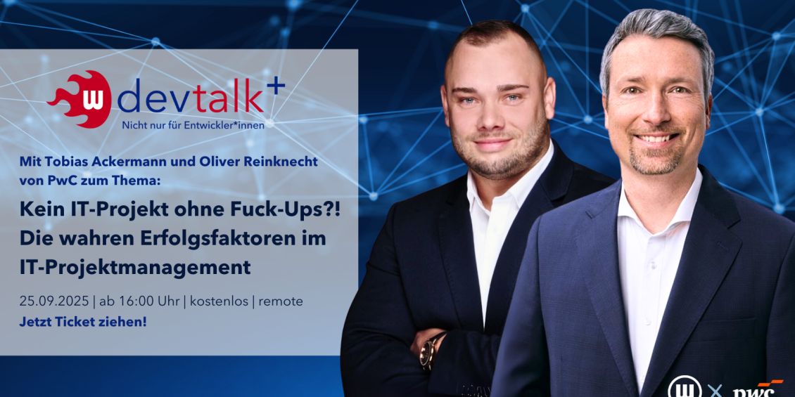 Du fragst dich, was aus unserem DevTalk geworden ist? Wir entwickeln unsere Formate stetig weiter – und präsentieren dir mit dem TechConnectTalk eine noch bessere Experience. Hier stehen die aktuellsten Hot-Topics aus der Tech- und IT-Welt im Fokus und viel Raum für Austausch.
