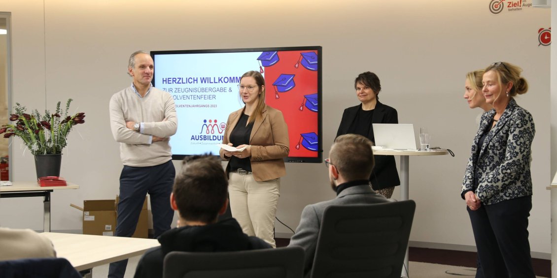 Nach einem Sektempfang, Grußworten und vielen schönen Gesprächen folgte die Zeugnisübergabe mit persönlichen Worten zu jede*m Absolvent*in und ein kurzer Rückblick auf die Ausbildungszeit in Form eines Videos. Ein gemeinsames Abendessen rundete den Abend perfekt ab. Auch von unserer Seite wollen wir allen Absolvent*innen noch einmal ganz herzlich gratulieren: Wir sind stolz auf euch!