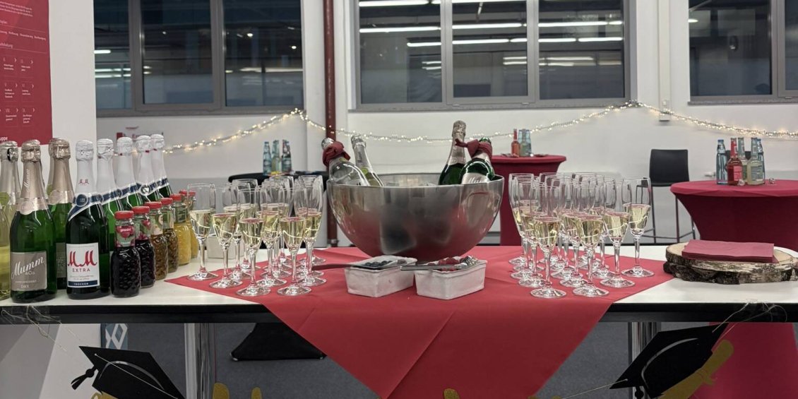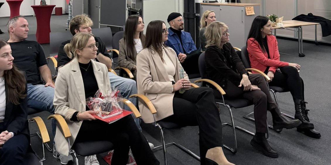 Um diesen Erfolg zu feiern, fand diesen Dienstag eine feierliche Absolventenfeier bei uns im Haus statt. Auf dem Programm standen neben einem Sektempfang und persönlichen Glückwünschen des Betriebsrats auch individuelle Laudationen des Young Talent-Teams, der Ausbilder*innen und der Praxiskoordinator*innen inklusive Geschenkübergabe.