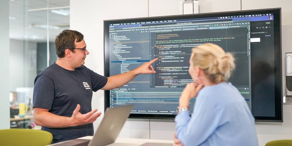 Durch die Pandemie kommt neben modernen Technologien und Scrum ein weiterer Faktor hinzu, der die Arbeit in Marinas Abteilung stark beeinflusst: Die virtuelle Zusammenarbeit. Größtenteils arbeiten ihre Teams remote. Hierfür haben wir mit der Umstellung auf Office 365 bereits vor Corona den Grundstein gelegt. Marinas Erfolgsrezept: Vertrauen in die Teams und regelmäßiger Austausch. Als Abteilungsleiterin ist es ihr wichtig, dass alle Teammitglieder sich auch virtuell treffen. Dabei geht es nicht nur um fachliche Themen, sondern auch darum, wie es dem Team im Mobile Office geht. Dieses ist im Entwickler-Alltag nie auf sich allein gestellt: Offene Fragen beantworten die Kolleg*innen auch remote jederzeit. Die Entwickler*innen haben zudem die Möglichkeit, via „Pair Programming“ virtuell zusammen an Aufgaben zu arbeiten.