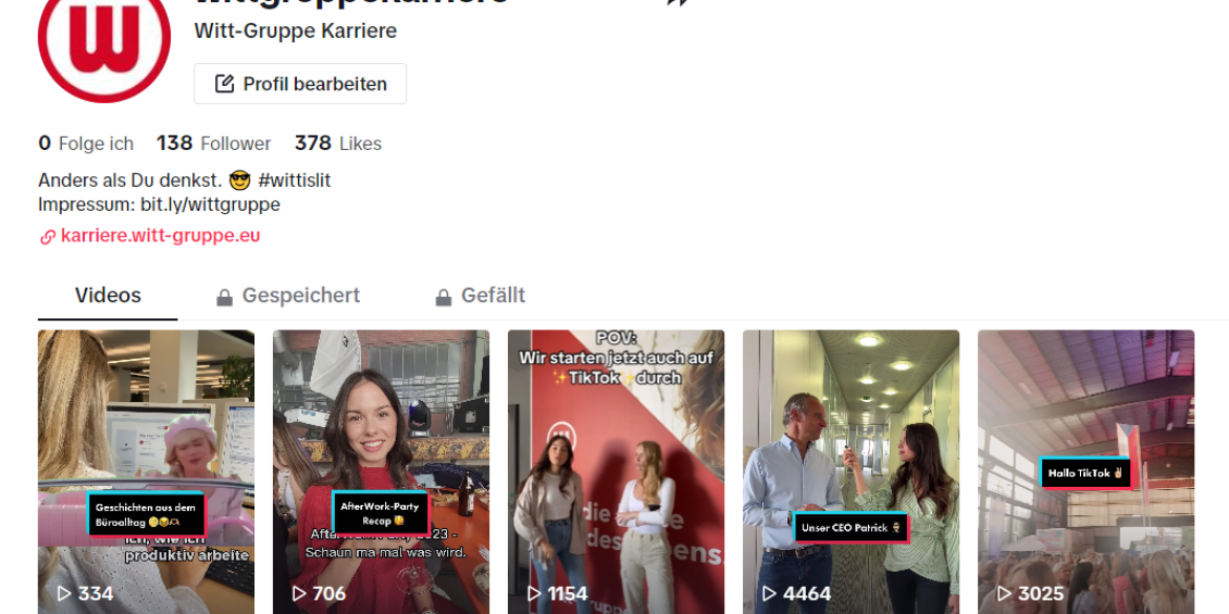 Endlich dürfen wir es euch ganz offiziell mitteilen: Ab sofort sind wir als Witt-Gruppe Karriere auch auf TikTok vertreten! Wir freuen uns riesig über den neuen Kanal und sind gespannt, wie die Videos bei euch ankommen.